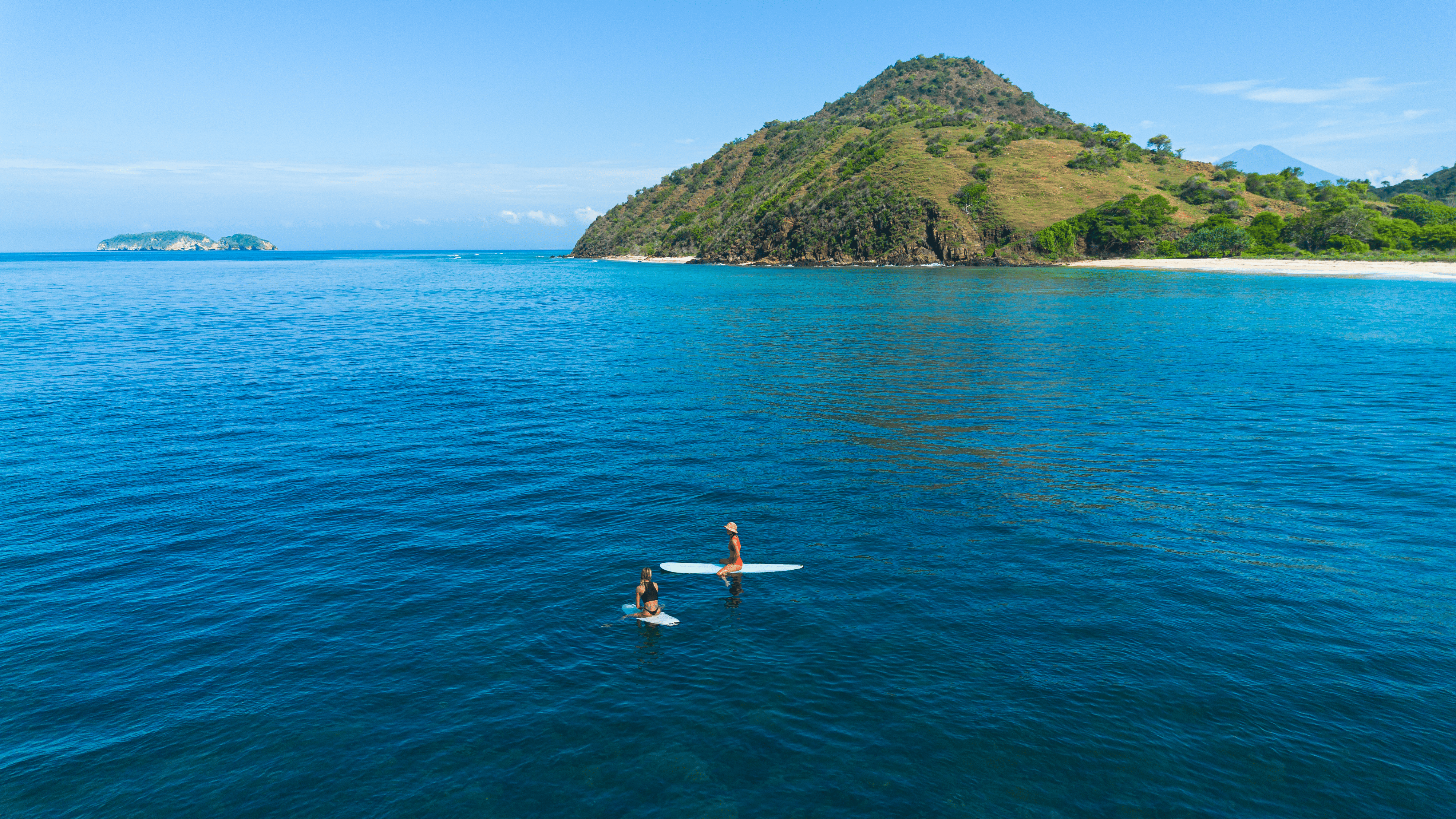 Tucked away in West Sumbawa, far from the noise and crowds, this little bay holds everything surfers dream about: empty lineups, crystal-clear turquoise water, soft white sand, and the stunning view of Mount Rinjani watching over the horizon. Surfing here feels like giving yourself a gift.